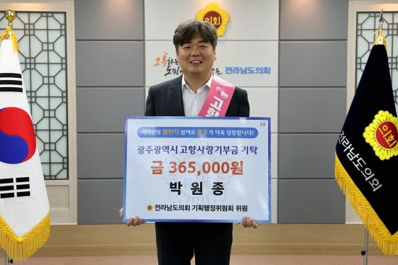 이는 정철 전남도의원과 은봉희 광주 남구의회 의원의 1호 상호기부 이후 이어진 2호 소식으로 박원종 의원은 2023년 시행된 고향사랑기부제를 활성화하고 성공적인 제도의 안착을 바라며 이번 상호기부에 남다른 의미를 두고 있다고 밝혔다.