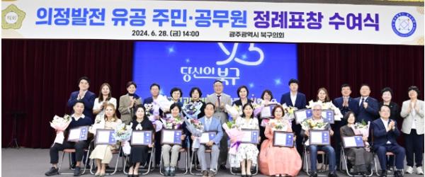 [중앙뉴스라인, 손기주기자] 광주 북구의회는 지난 6월 28일, 2024년도 2분기 정례표창 수여식을 개최하고 지역사회와 의정 발전 공이 있는 주민과 공무원에 대해 표창패를 수여했다고 밝혔다.
