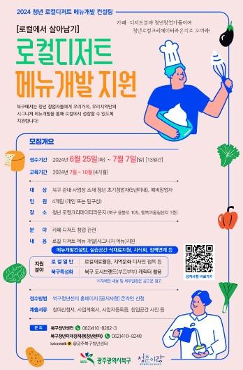 지원 규모는 북구 지역 카페?디저트 분야 청년 (예비) 창업가(5년 이내) 4개 팀 내외이고 북구 도시브랜드와 캐릭터를 활용한 메뉴 개발 아이디어가 있는 청년 창업가는 가산점을 부여받을 수 있다.