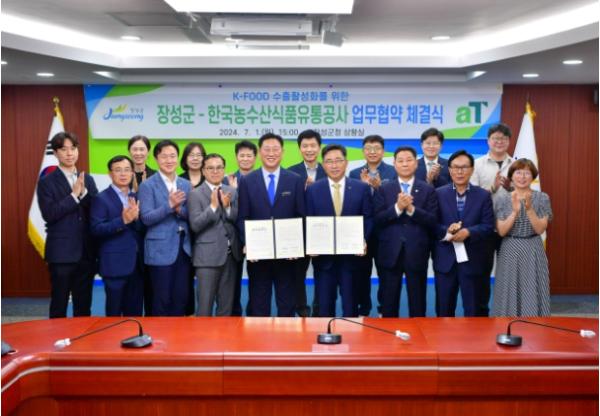 [중앙뉴스라인, 김민수기자] 장성군이 1일 한국농수산식품유통공사와 업무협약을 맺고 농식품 수출 확대에 주력한다.