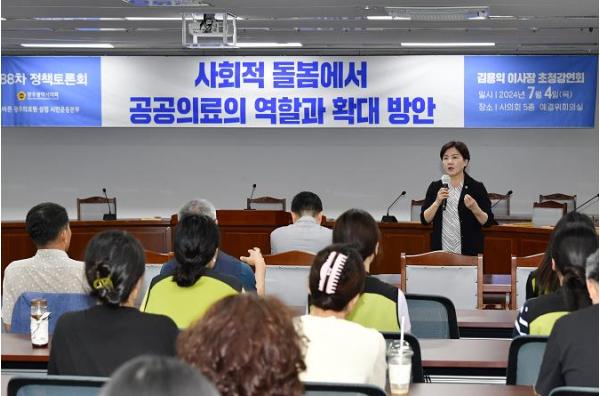 [중앙뉴스라인, 손기주기자] 광주광역시의회 박미정(더불어민주당,동구2) 의원은 4일 광주시의회 예산결산특별위원실에서 김용익 (재)돌봄과미래 이사장을 초대해 ‘사회적 돌봄에서 공공의료의 역할과 확대방안’ 이란 주제로 강연회를 개최했다.
