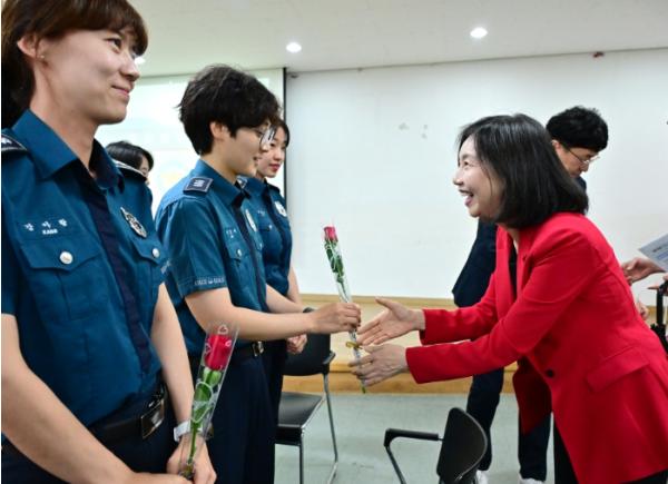 여경기동대 업무 현황을 청취한 최 의장은 “여성의 정치, 사회 참여가 늘고 여성이 주도하는 집회가 늘어나면서 현장에서 여경기동대의 역할이 크다. 당부드리고 싶은 것은 여러분이 안전해야 시민들도 안전하다는 사실”이라며, “여러분의 안전과 근무여건 개선을 위해 의회도 늘 함께하겠다”고 말했다.