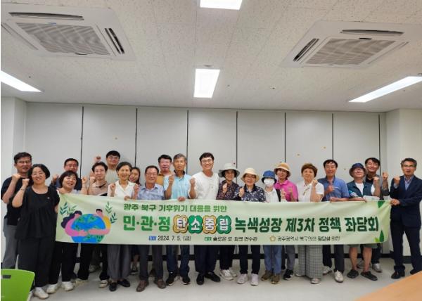 [중앙뉴스라인, 손기주기자] 광주 북구의회 정달성 의원(더불어민주당, 용봉·매곡·삼각·일곡)이 지난 5일 솔로몬 로-파크 연수관 강의실에서 ‘광주 북구 기후위기 대응을 위한 민·관·정 탄소중립 녹색성장 제3차 정책 좌담회’를 개최했다.