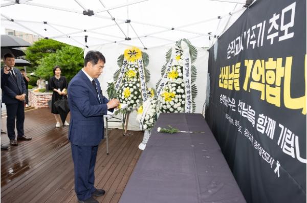 광주광역시교육청 이정선 교육감, 순직교사 1주년 추모공간 찾아 헌화
