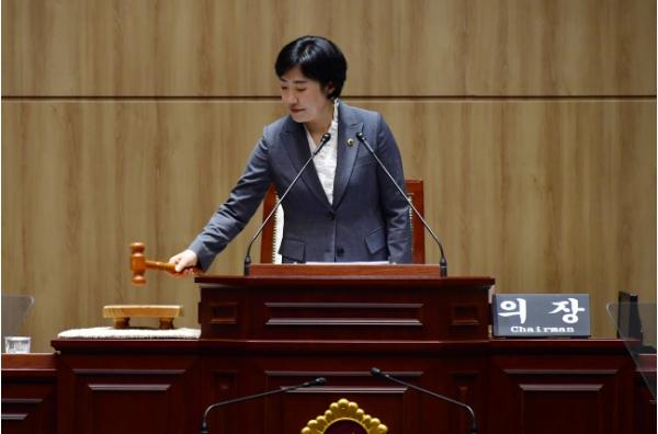 신수정 의장은 폐회사에서 “이번 회기에는 제9대 광주광역시의회 후반기 원구성과 업무보고 청취와 일반안건 처리 등 의정활동에 애써주신 동료 의원님, 사무처 직원들과 집행부 공직자 여러분께 감사 드리며, 우리 의원들은 광주발전을 위한 ‘원팀’이 되어 오로지 시민 눈높이에 맞는 의정활동을 약속드리며, 집행부와는 한 배를 탄 운명공동체라는 마음으로 협력할 것은 협력하고, 비난이 아니라 ‘애정 어린 비판’을 하겠다”고 밝혔다.