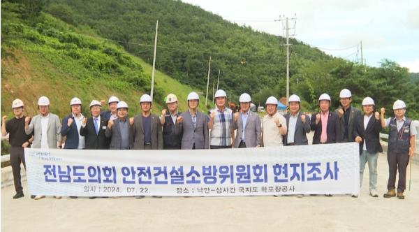 [중앙뉴스라인, 김민수기자] 전라남도의회 안전건설소방위원회는 제383회 임시회 기간인 지난 7월 22일 순천 낙안~상사 국지도 58호선 확포장 공사 및 여수 율촌천 하천재해 예방사업 현장을 찾아 추진현황을 청취하고 안전관리 상태를 점검했다.