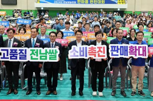[중앙뉴스라인, 김민수기자] 전라남도의회 김태균 의장은 7월 25일 오전 11시 장흥군 실내체육관에서 열린 ‘2024 전남새농민회 한마음 전진대회’에 참석했다.