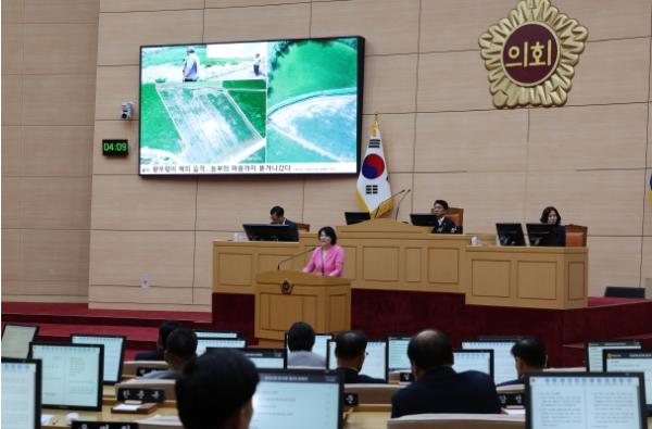 [중앙뉴스라인, 김민수기자] 전라남도의회 경제관광문화위원회 윤명희 위원장(더불어민주당, 장흥2)은 제383회 임시회 제2차 본회의에서 월동한 왕우렁이가 어린 모를 갉아먹는 피해의 심각성을 강조하며 왕우렁이 농법 재검토와 근본적인 대책 마련을 촉구했다.