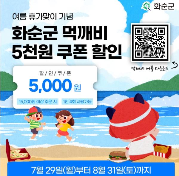 [중앙뉴스라인, 이대수 기자] 화순군이 7월 29일부터 8월 31일까지 공공배달앱 ‘먹깨비’에서 여름휴가 맞이 이벤트를 진행한다고 밝혔다.