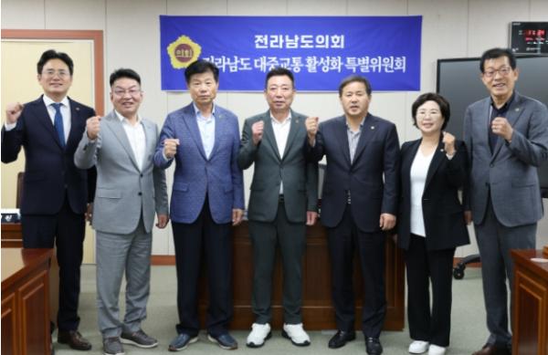 전라남도 대중교통 활성화 특별위원회는 김인정 위원장(진도), 진호건 부위원장(곡성), 이동현(보성2), 김문수(신안1), 차영수(강진), 박선준(고흥2), 김정이(순천8), 박현숙(비례), 임지락(화순1), 김호진(나주1) 의원 등 10인으로 구성됐다.