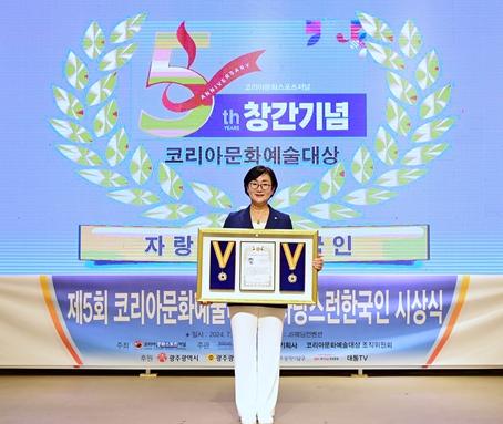 2024 코리아 문화예술대상(주최:코리아문화스포츠저널)은 지역사회 발전과 시민의 이용편의와 생활문화 향상을 위해 헌신한 인물에게 수여하는 상이다.