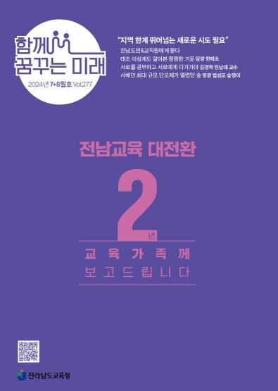 [중앙뉴스라인, 김민수기자] 전라남도교육청 소식지 '함께 꿈꾸는 미래' 7+8월호가 나왔다.