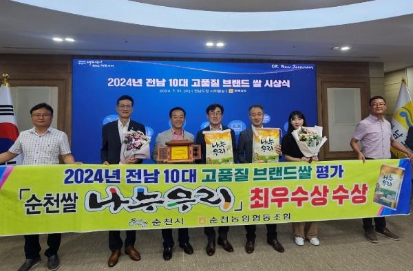 [중앙뉴스라인, 전은희기자] 순천시는 순천 쌀 대표 브랜드인 "나누우리"가 2024년 전남 10대 고품질 브랜드 쌀 시상식에서 “최우수상”을 수상했다고 밝혔다.