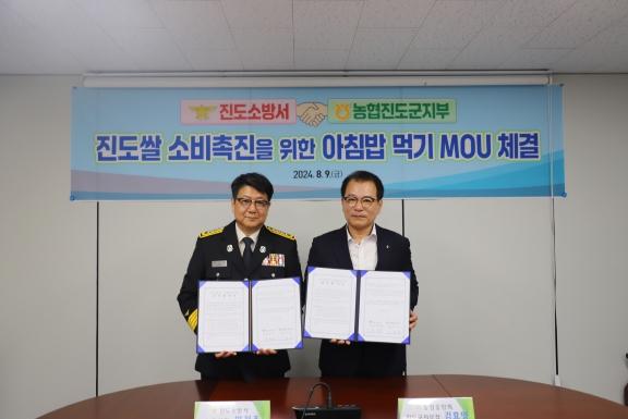 이번 업무협약은 양 기관의 상호협력을 바탕으로 소방안전 의식 고취, 건강한 식습관 형성 및 아침밥 먹기를 통한 진도쌀 소비 확대를 위해 이루어졌다.