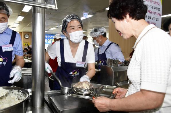 이어 신수정 의장은 “오늘 배식 봉사활동을 하며 큰 보람을 느꼈다”면서 “연일 지속되는 폭염에 지역 어르신들이 건강한 여름을 보내시길 바라며, 어르신들께서 건강한 노후생활을 영위할 수 있도록 광주시의회가 노인 복지 향상에 최선을 다하겠다”고 말했다.