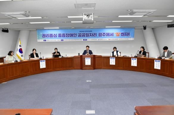 [중앙뉴스라인, 손기주기자] 이명노 의원(더불어민주당, 서구3)은 지난 14일 광주시의회 5층 예결위실에서 ‘권리중심 중증장애인 공공일자리, 광주에서 ‘잘’ 하자! 정책토론회’를 개최했다.