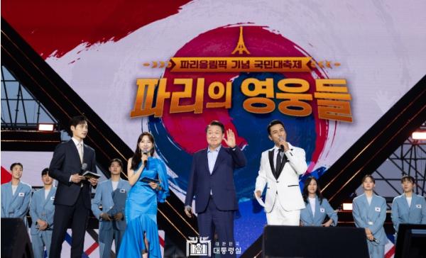 [중앙뉴스라인, 우제헌기자] 윤석열 대통령은 8월 16일 저녁 여의도공원에서 개최된 ‘2024 파리 올림픽 기념 국민대축제’ 행사에 깜짝 등장했다.
