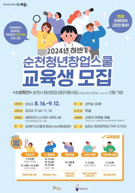 순천시, 2024 하반기 순천청년창업스쿨 교육생 모집
