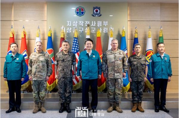 오늘 지상작전사령부 순시 현장에 군에서는 손식 지상작전사령관, 폴 라캐머라한미연합군사령관, 강신철 한미연합군부사령관, 크리스토퍼 라네브 미8군사령관 등이, 대통령실에서는 신원식 국가안보실장 겸 국방부장관, 인성환 국가안보실 2차장, 최병옥 국방비서관 등이 참석했으며, 화상으로는 김명수 합동참모의장, 로저 터너 (Roger Turner) 美 3해병기동군사령관을 포함한 한미 구성군사령관, 지상작전사령부 예하 군단장이 참석했다.
