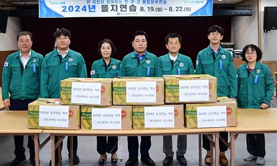 이날 광주광역시 서구의회는 을지연습 진행상황에 대해 간략히 보고받은 후 위문품을 전달하며 근무자들을 격려하고, 빈틈없는 훈련으로 구민이 전시에 안심할 수 있도록 노력해 달라고 당부했다.