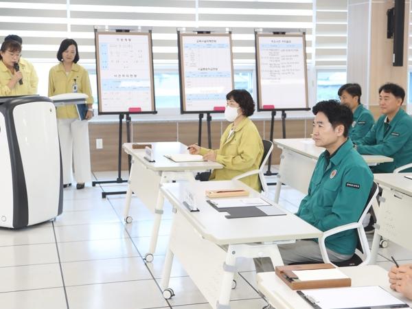 김대중 교육감은 이날 곡성교육지원청 을지연습 상황실을 찾아 ‘2024년 을지연습 훈련상황’을 점검하고, 훈련 참여 직원들을 격려했다.