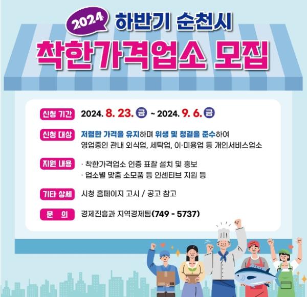 순천시, 2024 하반기 착한가격업소 모집