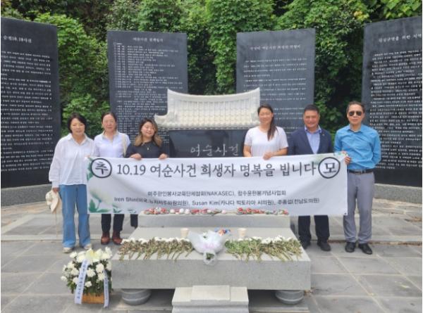 이들의 여수방문 일정을 계획하고 동행하며 현장 해설을 진행한 주 의원은 “미주에서 살고 있는 동포들과 함께 여순사건을 기억하고 희생자를 추모하는 뜻깊은 시간이었다”며 “앞으로 여순사건의 진상규명과 더 많은 사람들이 여순사건을 기억할 수 있도록 노력하겠다”고 말했다.