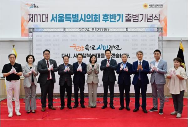 [중앙뉴스라인, 김민수기자] 최호정 서울특별시의회 의장은 27일 제326회 임시회 제1차 본회의 직후 의회 본관 1층 중앙홀에서 제11대 서울시의회 후반기 출범기념식을 개최했다.