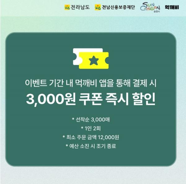 [중앙뉴스라인, 전은희기자] 순천시는 추석 명절을 맞아 9월 1일부터 공공배달앱 ‘먹깨비’에서 3,000매 가량의 3천원 즉시 할인 이벤트를 진행한다.