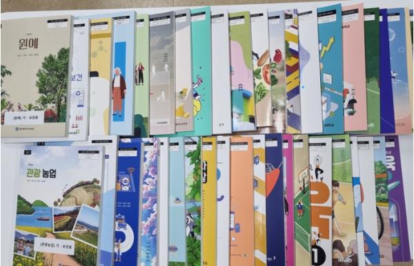 광주광역시교육감이 승인한 2022 개정 교육과정 인정도서는 ▲체육 교과군 26책(체육①,②) ▲수학 교과군 17책(기본수학1,2, 경제 수학, 인공지능 수학, 직무 수학) ▲기술·가정/정보 교과군 26책(로봇과 공학세계, 인공지능 기초, 데이터 과학, 소프트웨어와 생활) ▲경영·금융 교과군 4책(노동 인권과 산업 안전 보건) ▲보건·복지 교과군 2책(인간 발달) ▲문화예술 교과군 3책(조형, 색채 일반) ▲식품·조리 교과군 3책(식품과 영양, 식음료 기초) ▲정보·통신 교과군 9책(컴퓨터 구조, 프로그래밍, 알고리즘 설계, 인공지능 일반, 사물 인터넷과 센서 제어) ▲농림·축산 교과군 2책(관광 농업, 원예) 등이다.