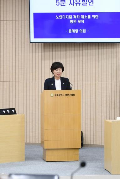 [중앙뉴스라인, 손기주기자] 윤혜영 광산구의원(더불어민주당, 신흥동·우산동·월곡1·2동·운남동)이 4일 제291회 광산구의회 임시회 제1차 본회의에서 5분 자유발언을 통해 ‘노인 디지털 격차 해소’를 위한 제언을 펼쳤다.