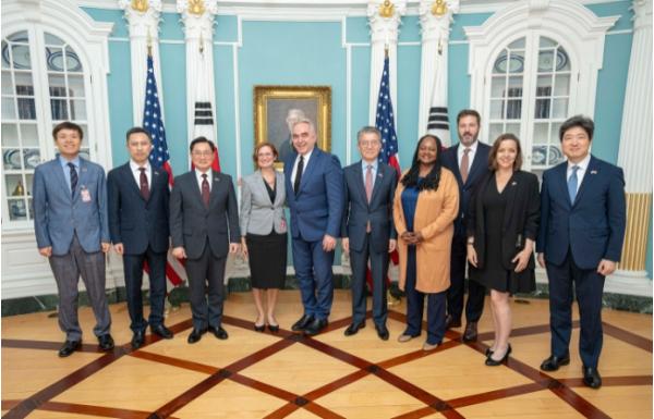 [중앙뉴스라인, 신기철기자] 한미 외교·국방 당국은 2024년 9월 4일 워싱턴에서 제5차 확장억제전략 협의체(EDSCG) 회의를 개최했다. 미국 대표단은 보니 젠킨스 국무부 군비통제·국제안보차관과 카라 에버크롬비 국방부 정책부차관 대행이, 한국 대표단은 김홍균 외교부 1차관과 조창래 국방부 정책실장이 각각 이끌었다.