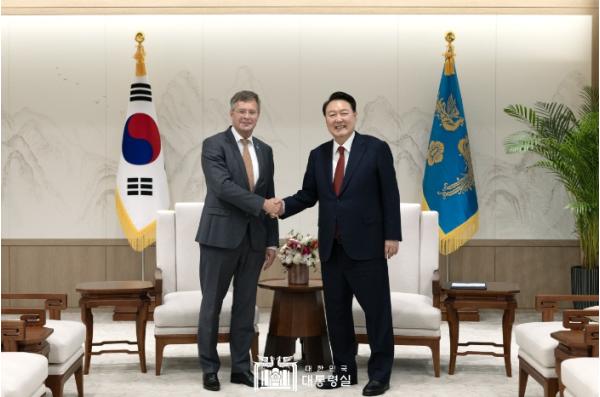 [중앙뉴스라인, 우제헌기자] 윤석열 대통령은 9월 9일 한국을 방문 중인'얀 페이터 발케넨데(Jan Peter Balkenende)' 前 네덜란드 총리를 접견하고, 한-네덜란드 양국 관계, 기후 및 환경 위기 대응 협력과 국제 정세 등에 대한 의견을 교환했다.