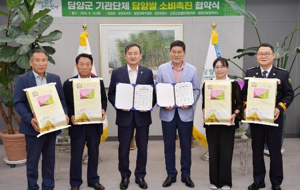 담양군 농업회의소와 농협운영협의회는 지난 10일 담양군청에서 담양군, 담양군의회, 담양경찰서, 담양교육청과 업무협약을 체결하고 담양 쌀 소비 활성화를 위한 기관 간 협력을 다짐했다.