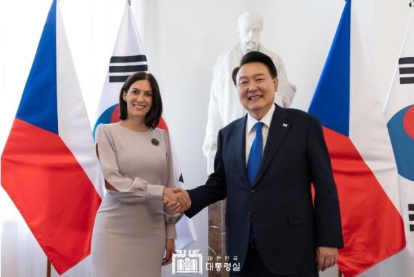 [중앙뉴스라인, 우제헌기자] 체코를 공식 방문 중인 윤석열 대통령은 오늘(현지시간 9. 20, 금) 체코 하원의사당에서 ?마르케타 페카로바 아다모바(Mark?ta Pekarov? Adamov?)? 체코 하원의장을 접견하고, 한-체코 관계의 발전 방안에 대해 폭넓은 의견을 교환했다.