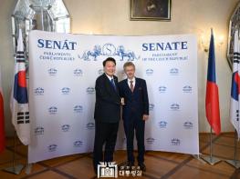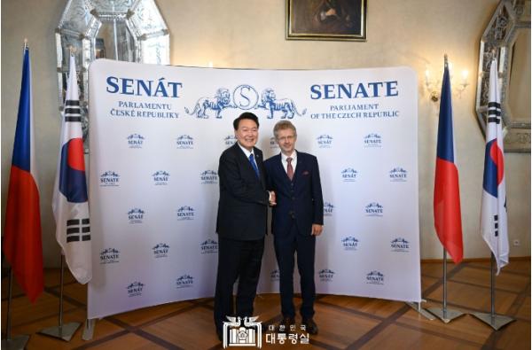 [중앙뉴스라인, 우제헌기자] 체코를 공식 방문 중인 윤석열 대통령은 오늘(현지시간 9. 20, 금) 체코 상원의사당에서 ?밀로쉬 비스트르칠(Milo? Vystr?il)? 상원의장을 접견했다.