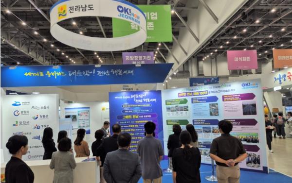 [중앙뉴스라인, 김민수기자] 전라남도는 25일까지 3일간 대구 엑스코에서 열리는 ‘2024 지역경제 혁신박람회’에 9개 시군, 3개 공공기관과 함께 전남도 통합전시관을 운영, ‘그랜드 전남 10대 프로젝트’ 등 민선 8기 후반기 정책을 홍보한다.