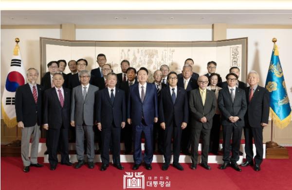 [중앙뉴스라인, 우제헌기자] 윤석열 대통령은 9월 24일 오후, 대통령실에서 재일본대한민국민단 관계자를 초청해 간담회를 가졌다. 민단은 재일동포의 권익 보호와 법적 지위 향상을 위해 활동하는 대표적인 동포단체이다.