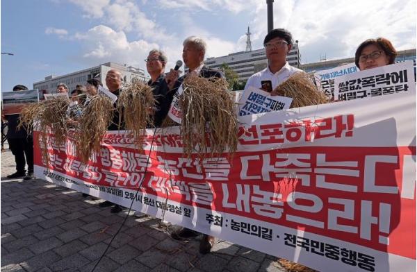 이날 용산 대통령실 앞에서는 전국농민회총연맹, 전국쌀생산자회협회 등이 주최한 병충해·수혜 특별대책 촉구대회가 열렸으며 전종덕 국회의원(진보당 비례대표) 등이 참석했다.