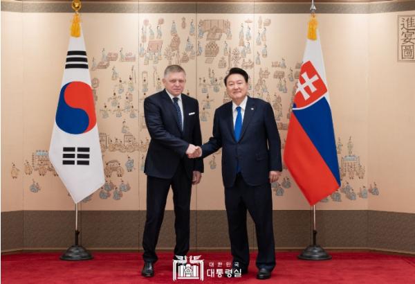 [중앙뉴스라인, 우제헌기자] 윤석열 대통령은 오늘(9. 30, 월) 한국을 공식 방문 중인 '로베르트 피초(Robert Fico)' 슬로바키아 총리와 정상회담을 갖고, 양국 간 협력 증진 방안과 지역 및 국제 정세에 대해 폭넓은 의견을 교환했다.