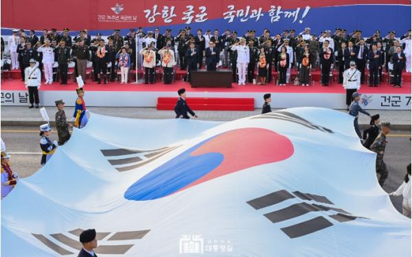 [중앙뉴스라인, 우제헌기자] 윤석열 대통령은 10월 1일 서울공항에서 열린 국군의 날 기념식에 이어 오후에는 광화문에서 국민과 함께하는 시가행진을 주관했다. 이번 시가행진은 작년에 이어 서울광장에서 광화문에 이르는 구간에서 개최됐으며, 블랙이글스 축하 비행 속에 3,000여 명의 병력과 80여 대의 장비가 참가했다.