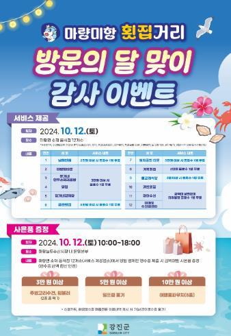 행사 기간에는 마량 미항횟집거리 내 음식점 12개소에서 일정금액 이상 결제 시 음료수를 서비스로 제공받을 수 있으며, 당일 결제한 일정금액대 이상의 영수증을 마량놀토수산시장 운영본부에 제출 시 금액대별(3만 원, 5만 원, 10만 원 이상) 사은품을 받을 수 있다.