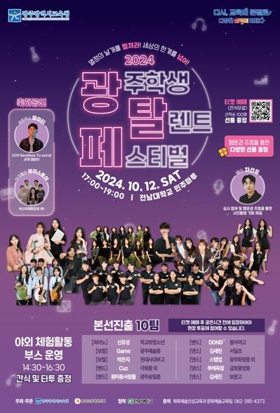 [중앙뉴스라인, 손기주기자] 광주시교육청은 오는 12일 전남대학교 민주마루에서 ‘제2회 학생 주도 오디션 프로그램 光탈페(광주학생탈렌트페스티벌)’를 개최한다.