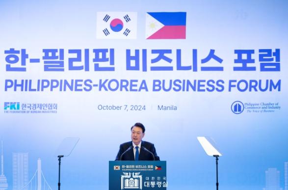 [중앙뉴스라인, 우제헌기자] 윤석열 대통령은 오늘(현지시간 10. 7, 월) 오후 필리핀 마닐라 시내 호텔에서 열린 ?한-필리핀 비즈니스 포럼?에 참석했다. 대통령의 국빈 방문을 계기로 열린 오늘 행사에는 양국 경제인뿐만 아니라 페르디난드 로무알데즈 마르코스 주니어 필리핀 대통령도 함께 참석해 자리를 빛냈다.
