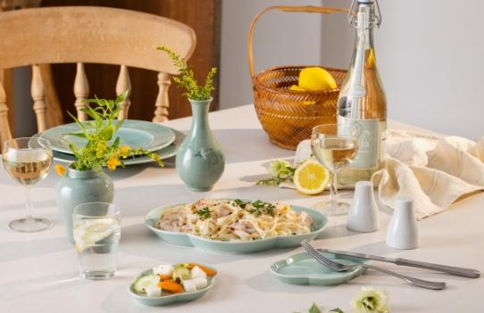 비취에 물들다는 이번 ‘강한 소상공인 성장지원사업’에서 강진의 청년 로컬크리에이터 파트너사 ‘달비’와 함께 ‘오늘의 청자’라는 이름으로 오늘의 현대 생활에 맞는 청자 양식기 세트와 굿즈를 개발했다.