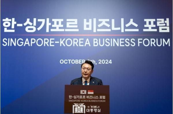 [중앙뉴스라인, 우제헌기자] 윤석열 대통령은 10월 8일 오후 싱가포르의 시내 호텔에서 열린 ?한-싱가포르 비즈니스 포럼?에 참석했다. 대통령은 어제 필리핀에 이어 오늘 싱가포르에서도 비즈니스 포럼에 참석해 경제인과의 소통 행보를 이어갔다.
