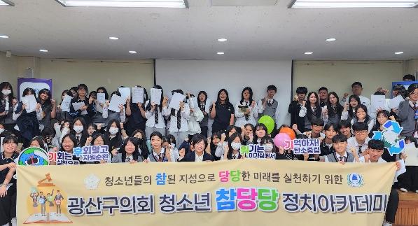 광산구의회(의장 김명수)가 11일 정광고등학교에서 ‘청소년 참당당 정치 아카데미’ 2회차 지역문제공감교육을 개최했다.