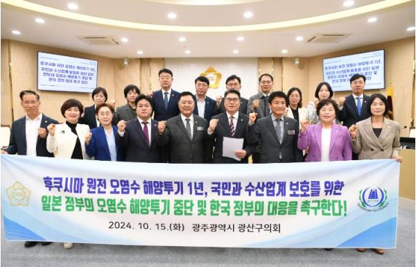 [중앙뉴스라인, 손기주기자] 광산구의회가 15일 제292회 임시회 제1차 본회의에서 ‘후쿠시마 원전 오염수 해양투기 1년, 국민과 수산업계 보호를 위한 오염수 해양투기 중단 및 한국 정부 대응 촉구 결의안’을 채택했다.