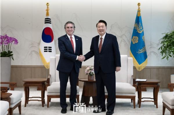 [중앙뉴스라인, 우제헌기자] 윤석열 대통령은 10월 16일 오후 '더그 버검(Doug Burgum)' 미국 노스다코타 주지사를 접견하고, 한-노스다코타州 간 협력 확대와 한미동맹 발전 방안에 대해 의견을 교환했다.