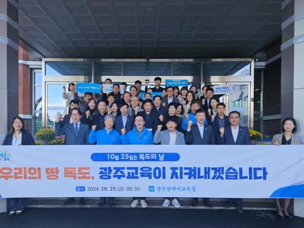 [중앙뉴스라인, 손기주기자] 광주시교육청은 독도의 날을 맞아 25일 본청 현관에서 교직원과 함께 독도 수호 의지를 다지는 행사를 개최했다.